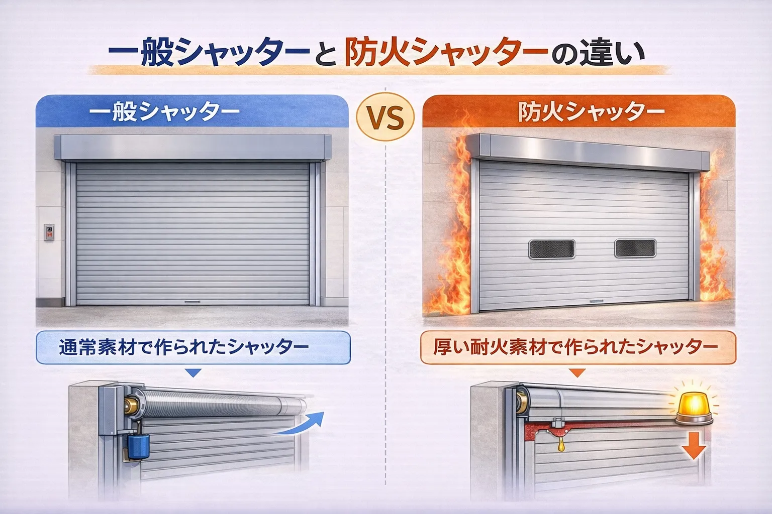 | 防火シャッター | 火災時に自動閉鎖して延焼を防ぐ建築基準法に基づく防火設備。 |